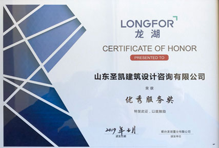 公司獲得煙臺龍湖置業(yè)有限公司2018年度優(yōu)秀服務獎